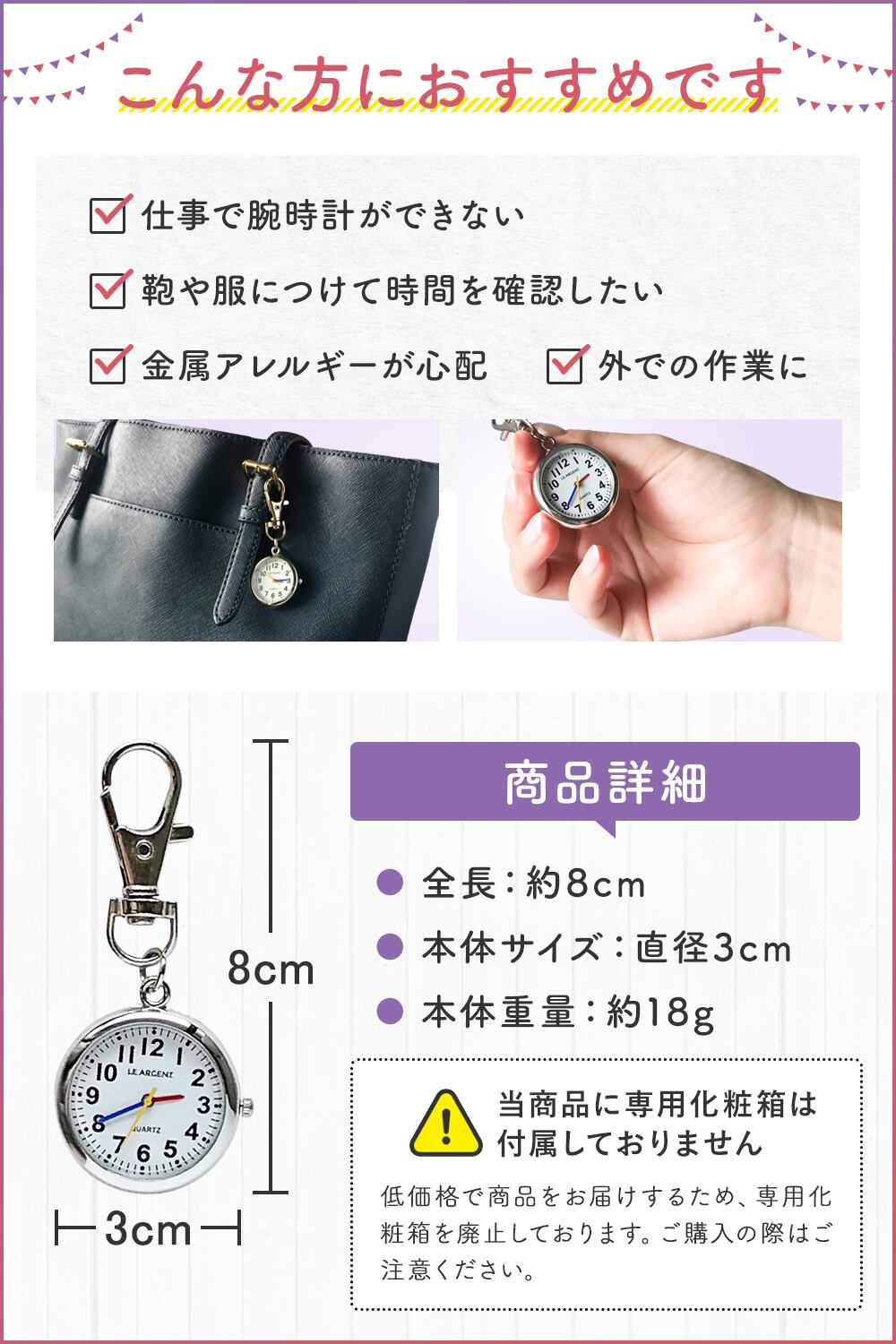 超小型のキーホルダー型懐中時計です。女性物バッグ、カバン、財布などに付けても似合う可愛い仕様です。ナースウォッチとしてもご利用頂けます。