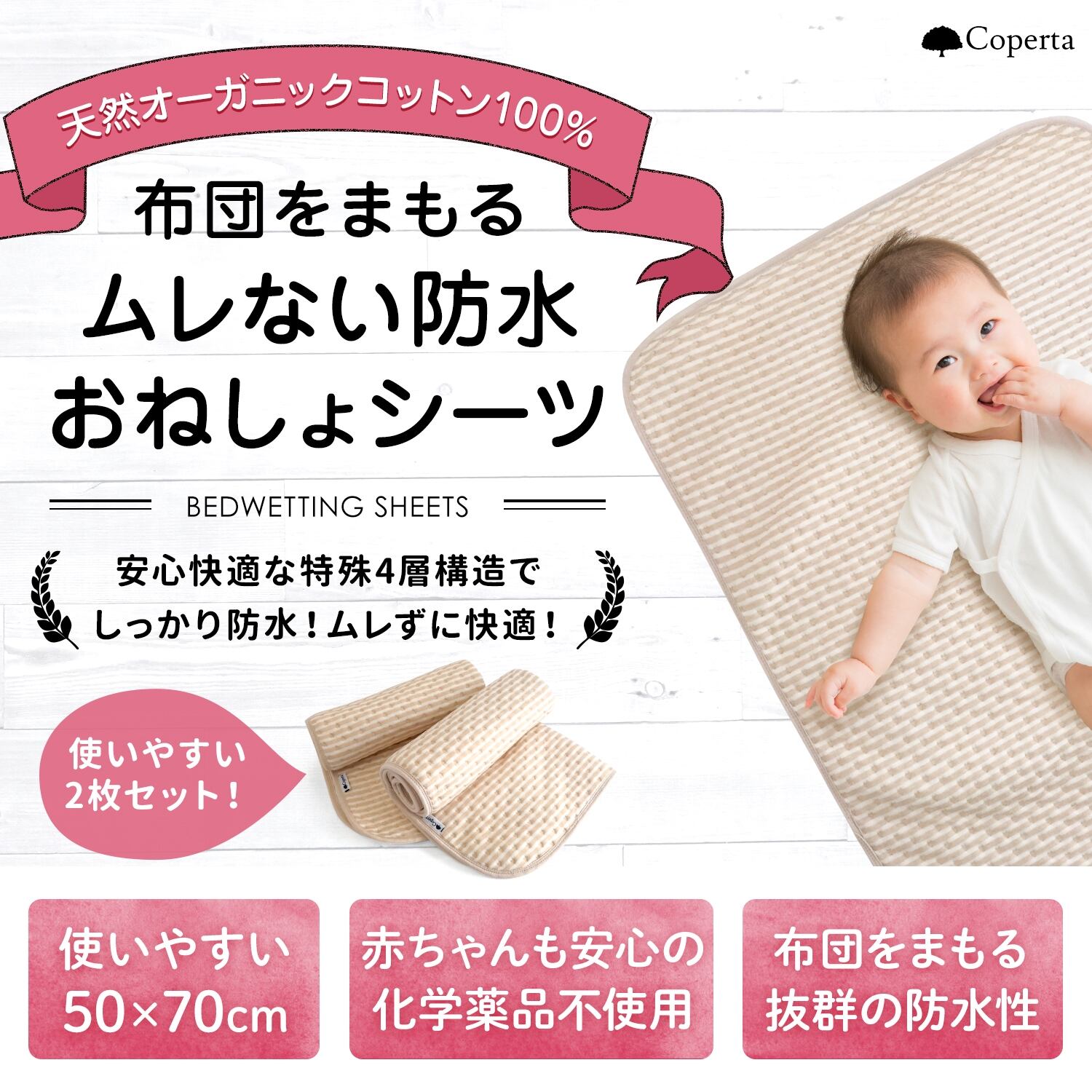 Coperta おねしょ防水シーツ【50㎝×70㎝ 天然綿100% 丸洗い可能 2枚セット】